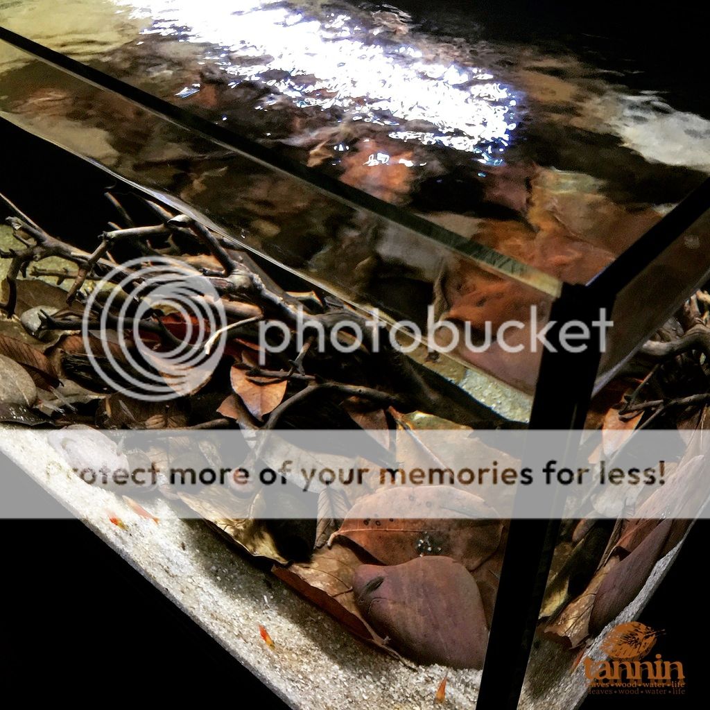 Remember the "demonstration" I've been doing with our office display tank over the past couple of months? We were showing that you can have tons of leaves and botanicals in a an aquarium while still keeping the water in that "blue-white" mode that the majority of the fish keeping world seems to fancy. With good water management, and the help of activated carbon(!), we kept this water as bright and clear as any "mainstream" aquarium could be.